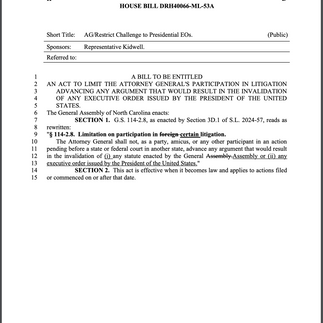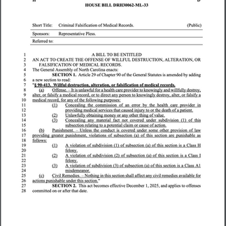 NC State Government General Assembly House & Senate Bills DRAFTED (*not finalized*) from January 1st, 2025 to February 13th, 2025. we took a screenshot of the first page of many drafted bills (but not all of them).